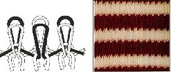 - 双反面组织:它是由正面线圈横列和反面线圈横列交替 配置而成,其纵横向的弹力和延申性接近。
