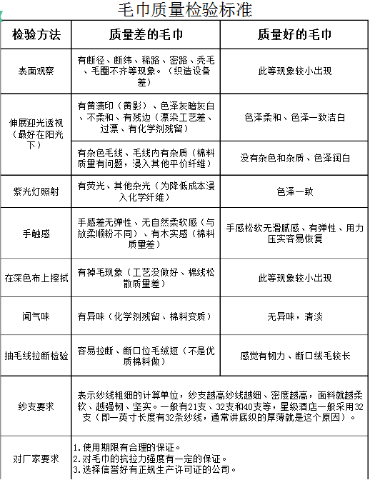 1、如何辨别毛巾的好坏